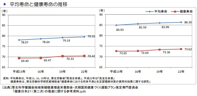 平均寿命と健康寿命との差は、日常生活に制限のある「不健康な期間」を意味しま